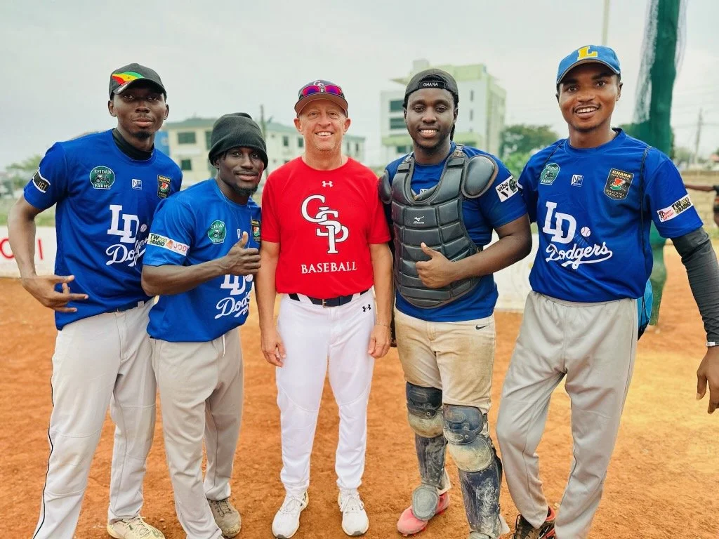 Accra, Ghana – Global Sports Partners (GSP) recently returned to Ghana to conduct a baseball coaches and players clinic in partnership with the Ghana Baseball Softball Federation (GBSF). GSP brought Bo Gobin, former pitcher at Clemson University, Chad Bunting, former outfielder for Lamar University, Edel Heredia Riveron, Spain National Team coach, and GSP Baseball Director Justin Rhodes. Participants included approximately 20 coaches and 30 players from across the country.